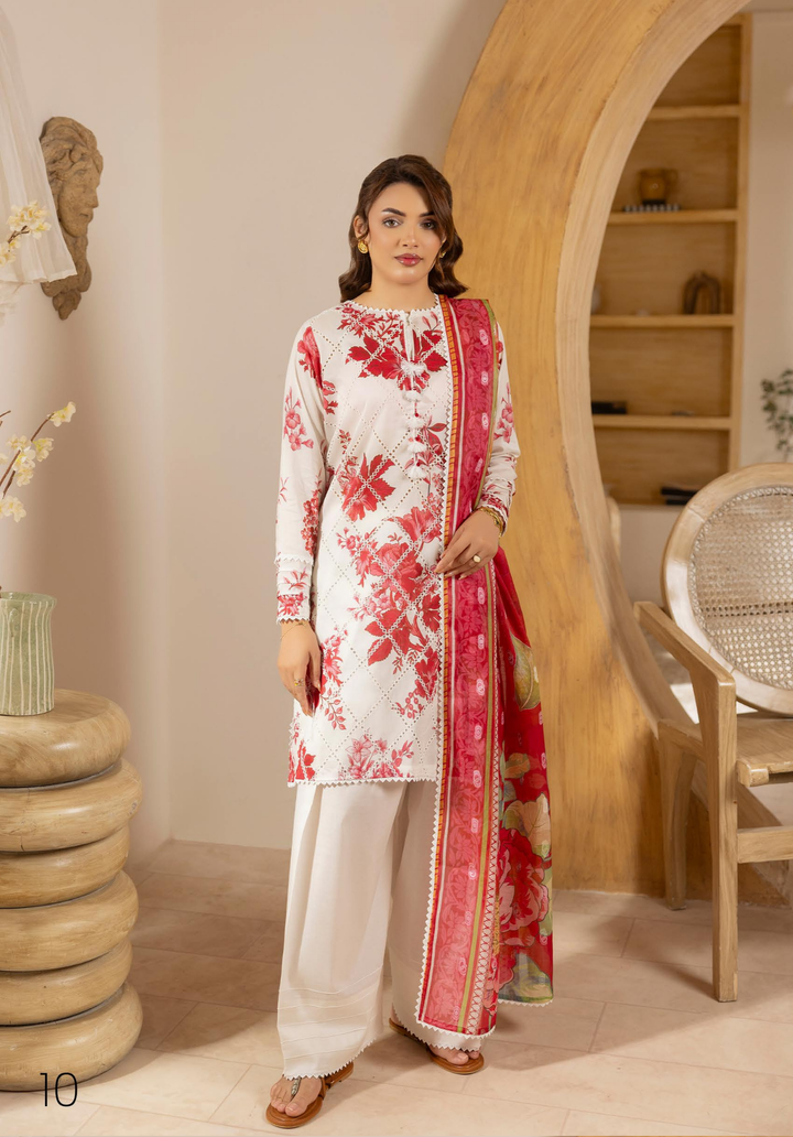 • Premium Digital Printed & Boring Embroidered Lawn Shirt with Laces (Inner Attached)